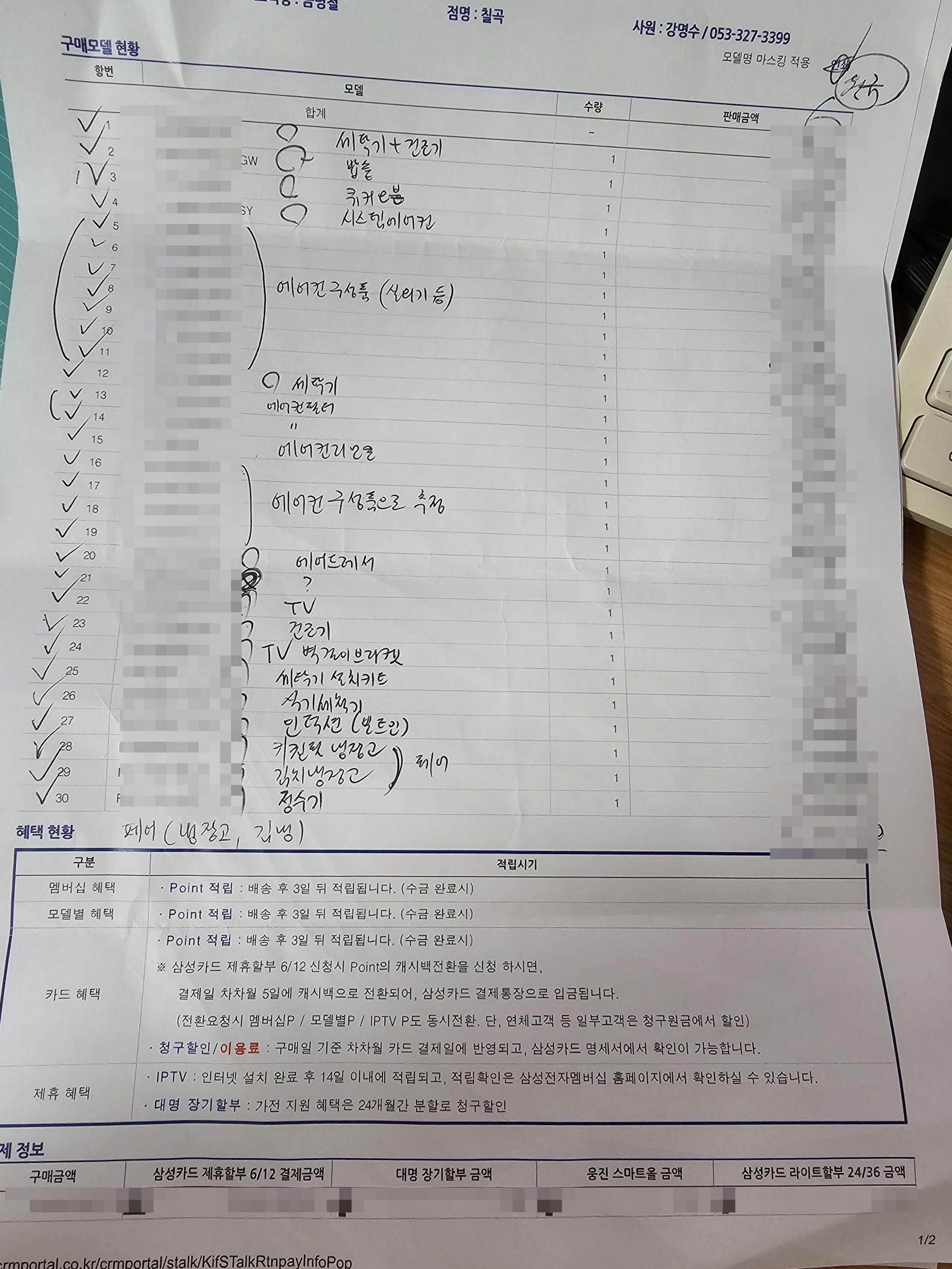 (모델명과 구입 금액은 살짝 가렸습니다.)